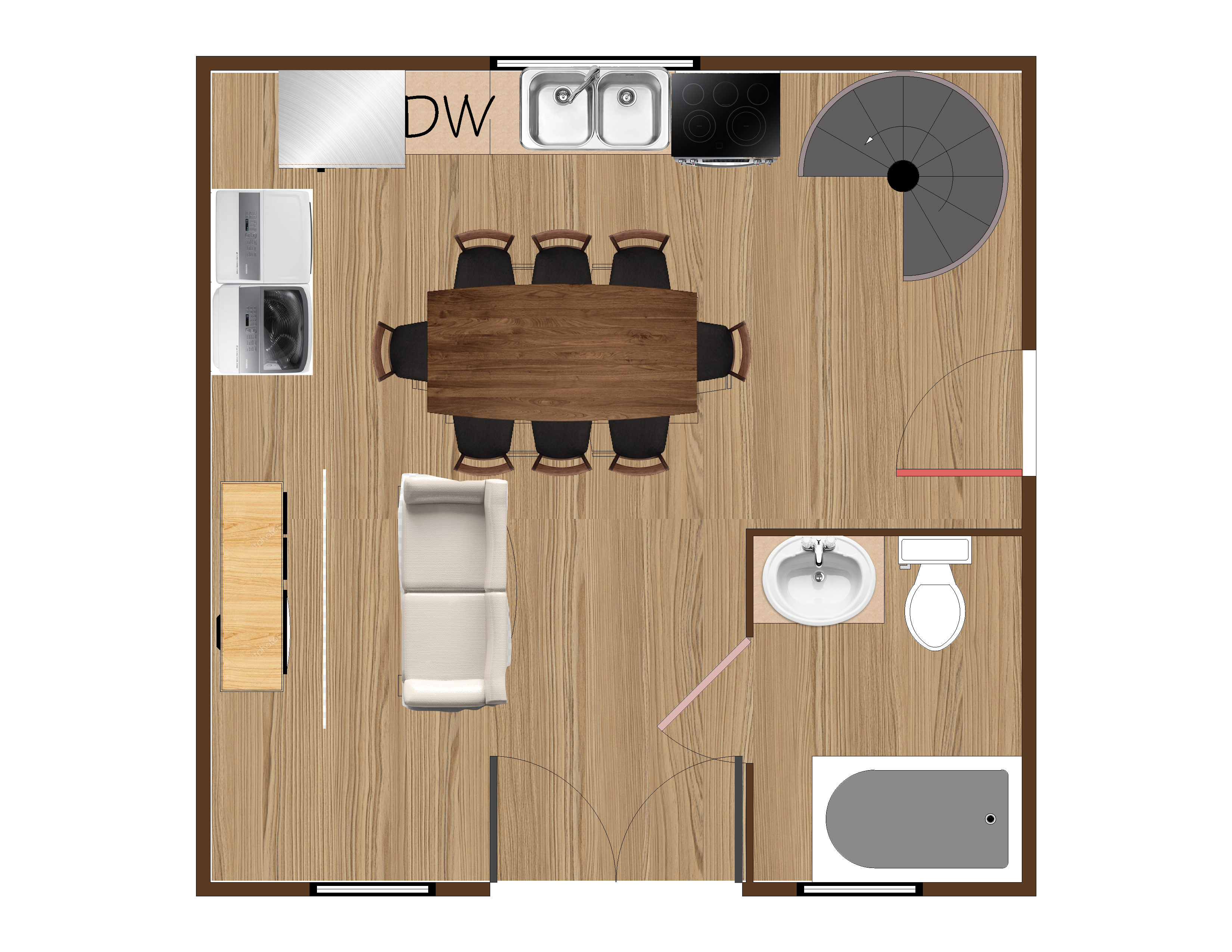 Above is a tiled gallery of concept art for a tiny house I created. I first drafted the elevations and floor plans in AutoCAD. After plotting them to create PDFs, I use Adobe Photoshop to make the concept art.